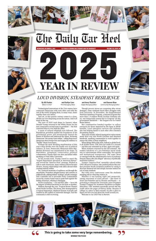 selected and contributed photo artwork for the daily tar heel's 2025 year-in-review, "Loud division, steadfast resilience"